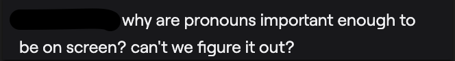 Roughly every 30 secs someone asks (or whines) abt the pronouns on the GDQ overlay. Almost always in bad faith, deliberate attempts to derail & push back against the normalization of trans identities. At a certain point, just treat 'em as if they're acting in bad faith and ignorepic.twitter.com/iTiWDbhtbA