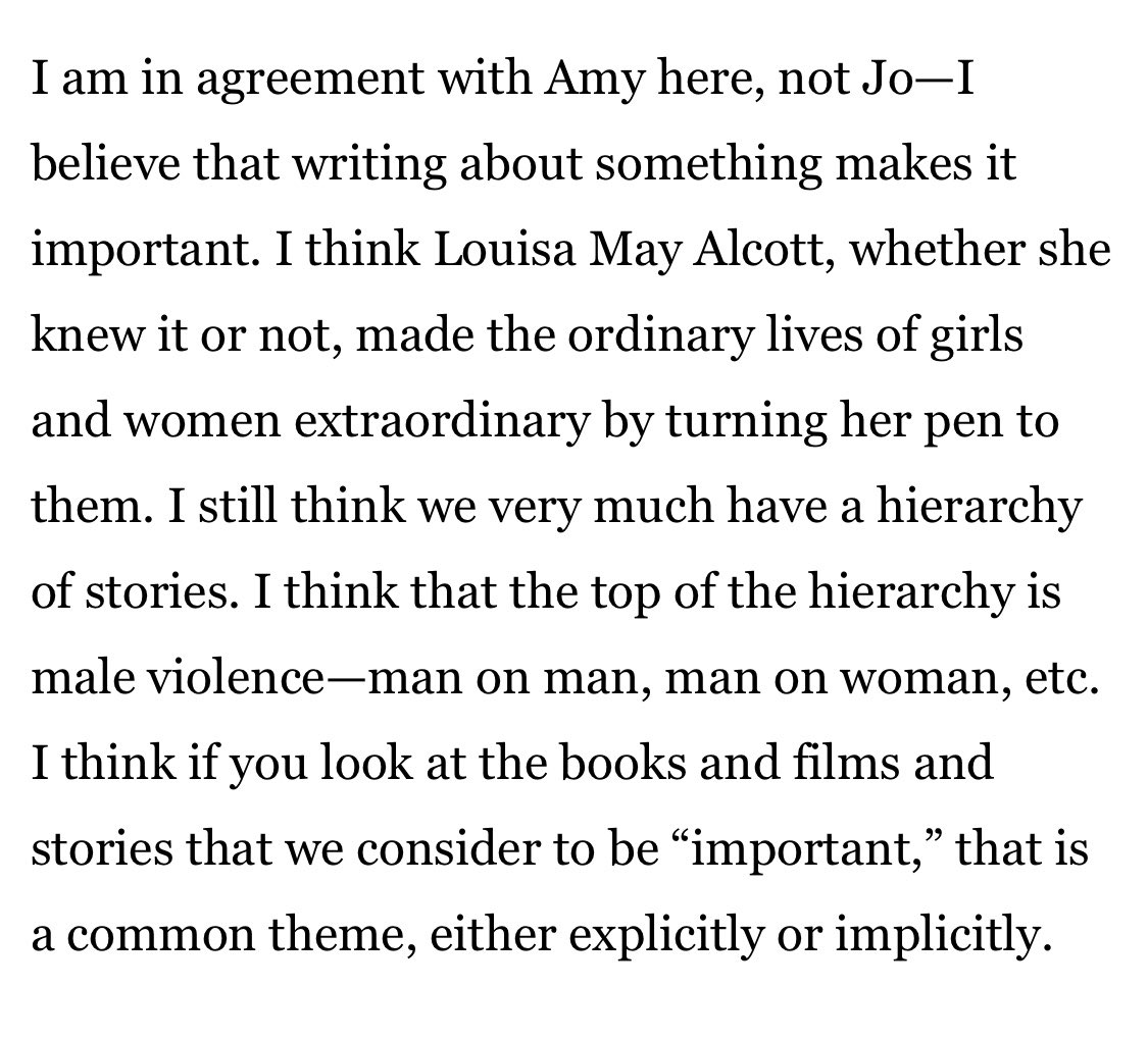 I agree w/those who say calling The Irishman a film about “white male rage” is at best a big oversimplification but it’s certainly about violent white men & as a comedy bit I feel what the song does is highlight what Gerwig argues here about the stories we deem the most valuable:pic.twitter.com/kSTnqyv0VM