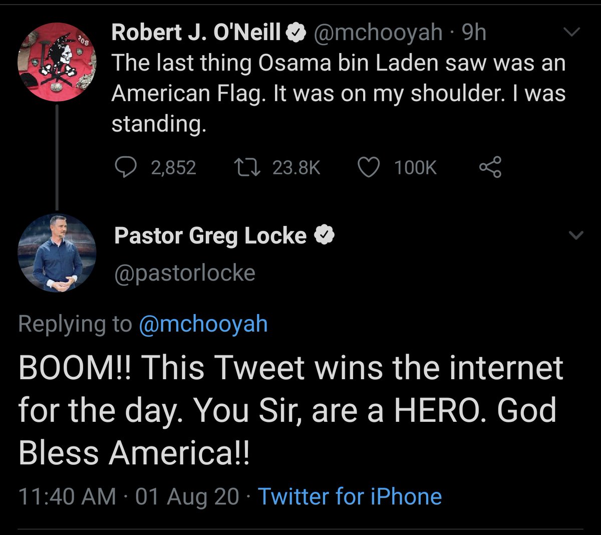 Jesus looked down from heaven and was all "the American flag was such a great touch during that kill, this owns."