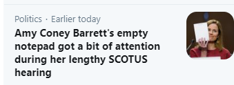 The empty notepad makes sense. The whole thing is pointless. She just has to avoid, I dunno, saying she's a Yankees fan, and the GOP will approve her. What's she gonna take notes of? I'm surprised she wasn't doodling herself in the steps of the court.