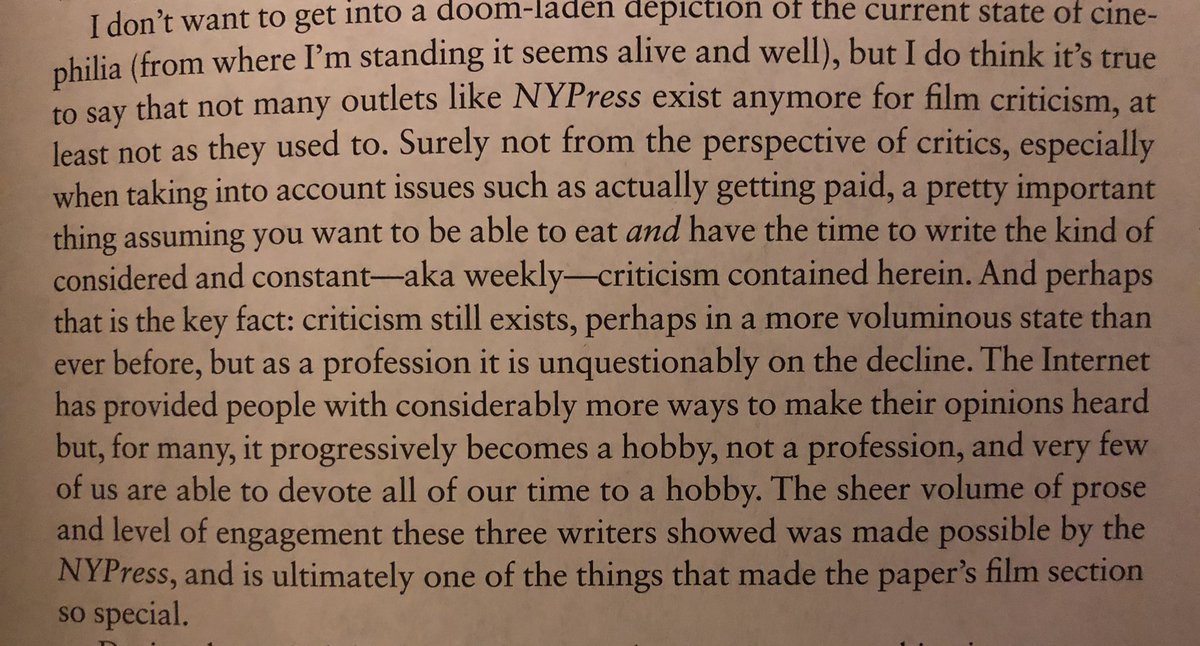 Look at this hefty tome of film criticism I just acquired! Oh, for the days you could open up your local weekly and find long-form film crit “without an obvious demographic appeal.” (Excerpts from editor Jim Colvill’s foreword.)pic.twitter.com/iEbUAErYFK