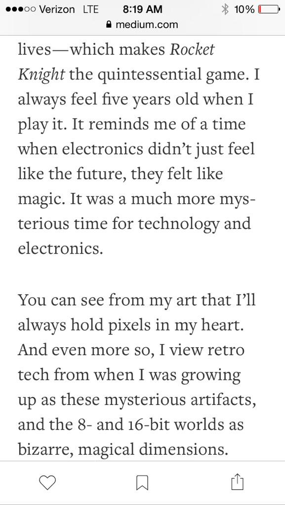 I like this text by Sachin Teng accompanying his Rocket Knight illustration for Matter. I know the feeling.pic.twitter.com/YMArdpRirO