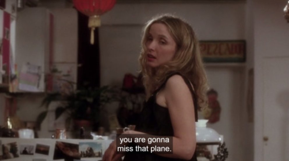 stay/go, missing flights/catching flights - Before Sunset, 2004 Broken English, 2007 Kiss Me, 2011 You know... http://tmblr.co/ZwAMEy1tJ2J8m