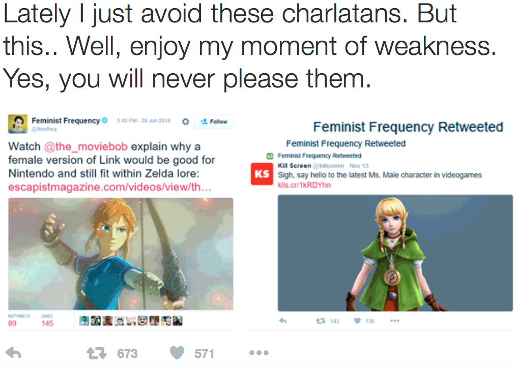 Lots of people claiming it's hypocritical to want the option to play as a female Link and not be thrilled about Linkle. It's not at all.
