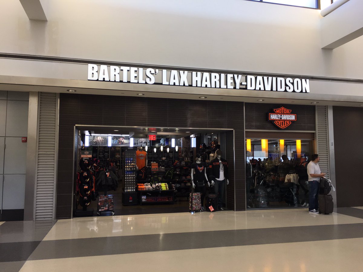 Flight home got canceled, so I live here now: the Bartel's LAX Harley-Davidson. I have assembled a fort from bedazzled shirts. Please visit.pic.twitter.com/3wjYc916Xr