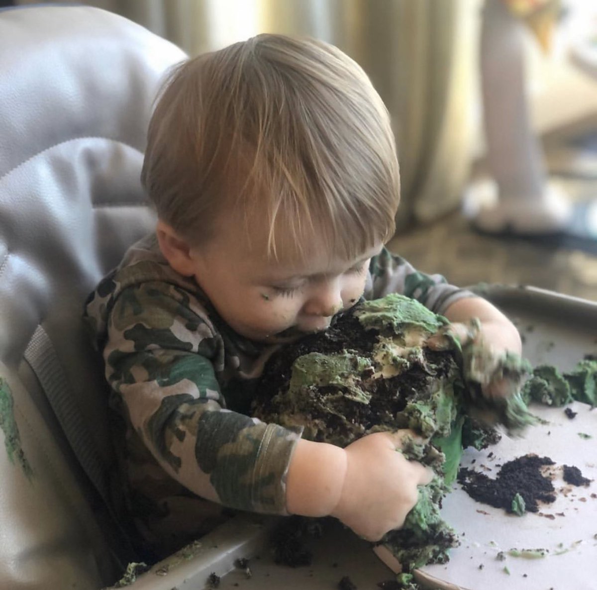 Enjoy it, baby boy...when you're an adult, sticking your face in the bowl to lick the bottom is "frowned upon."