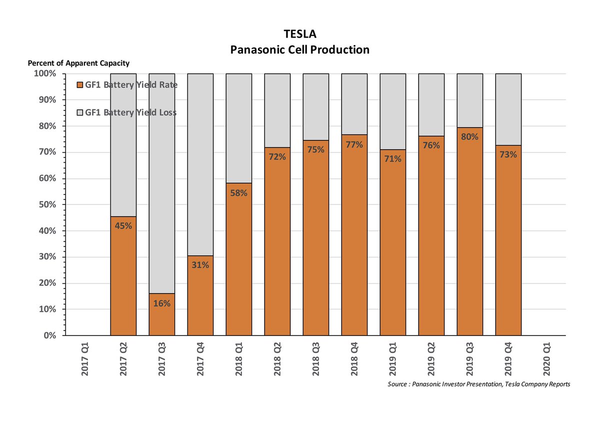 2. And even when they achieve that “nominal” rate, there is still plenty of upside from reducing the massive Yield Loss from production - improving Yield rates for Panasonic may be increasing GF1 cell supplypic.twitter.com/6SI2niL0CD