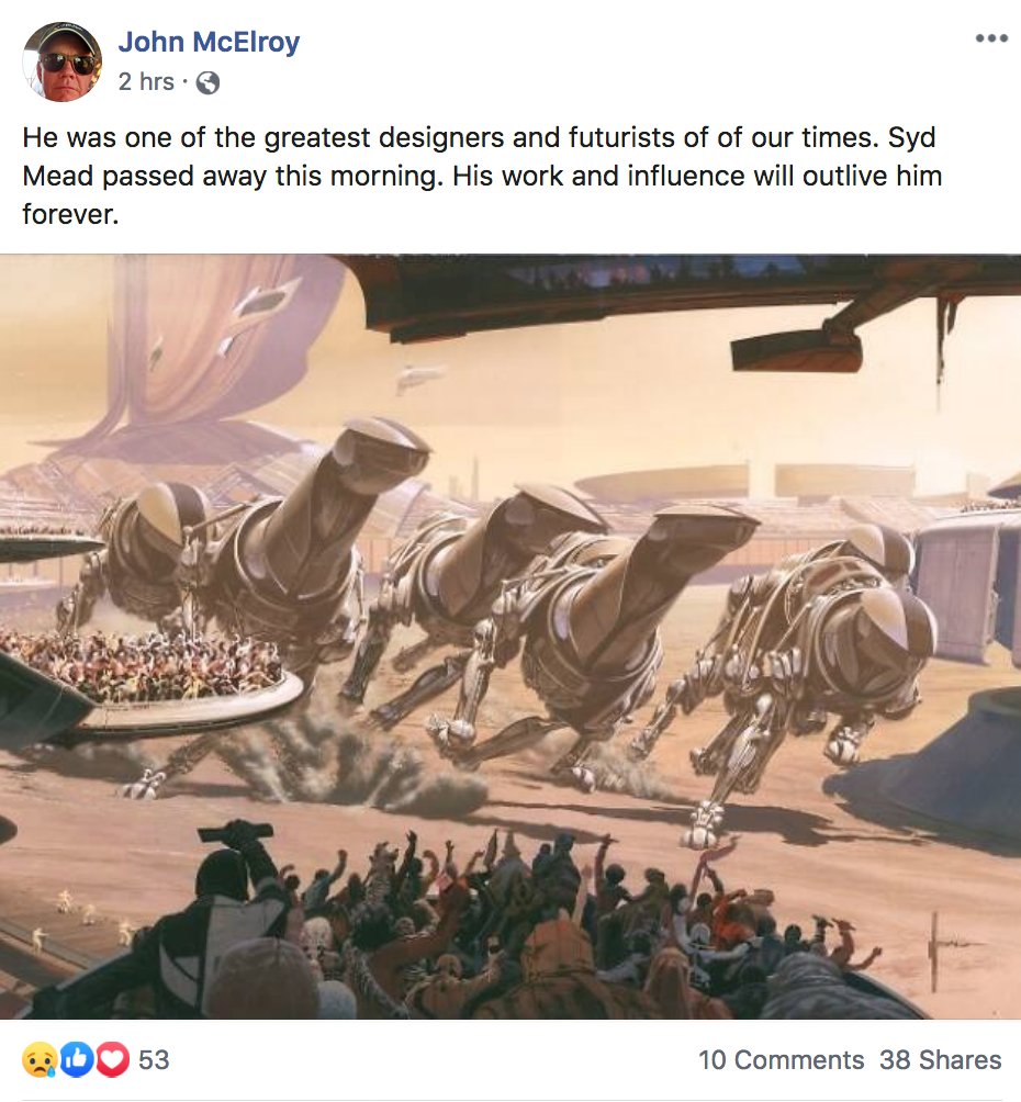 News has subsequently been confirmed by the Syd Mead Official Fan Club page on Facebook.pic.twitter.com/CQqfINZ9Ps
