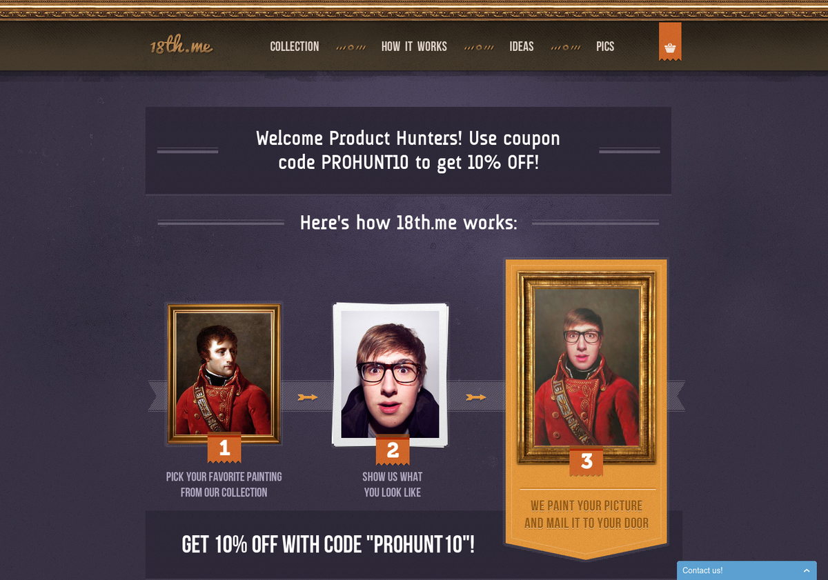 18th.me Oil Paintings: Turn yourself into an 18th century oil painting! http://www.producthunt.com/posts/18th-me-oil-paintings … via