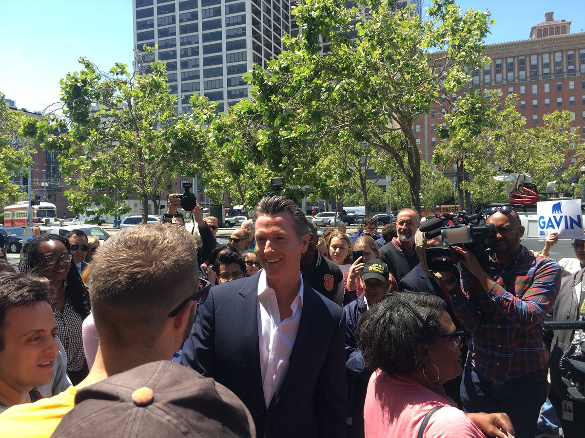 @GavinNewsom meets people at San Francisco’s Ferry Building day after winning governor’s primarypic.twitter.com/X8TT4syCkI