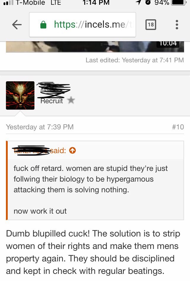 Took a look at an #incel message board and this is the kind of thing I find... #wtf #terrifyingpic.twitter.com/k5RaUnnqQf