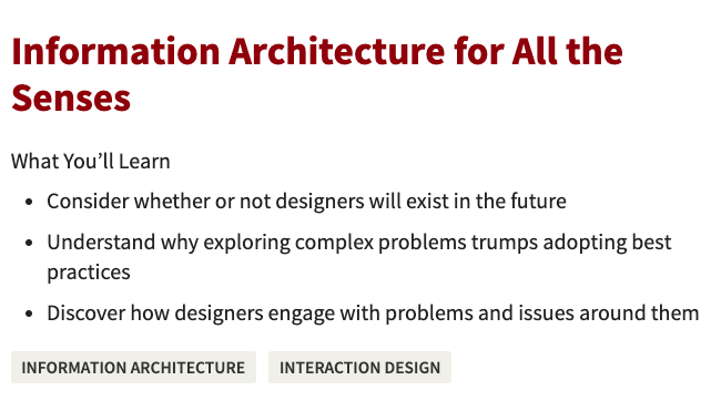 Coming soon! Information Architecture for All the Senses. Cassini Nazir's presentation that will have you exploring design ideas that help us think beyond vision.