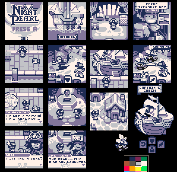 #pixelart #gamedev Mockup for a 64x64 pixel pirate jrpg with a four shade gameboy palette. for @pixelsWeeklypic.twitter.com/TLGJ3HUN83
