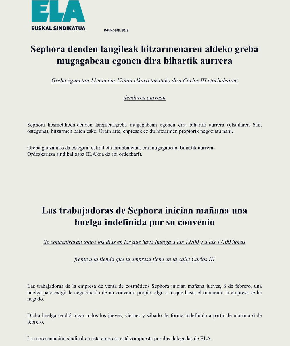 Las trabajadoras de Sephora inician mañana una huelga indefinida por su convenio Se concentrarán todos los días en los que haya huelga a las 12:00 y a las 17:00 horas frente a la tienda que la empresa tiene en la calle Carlos IIIpic.twitter.com/piAjmM9zE4