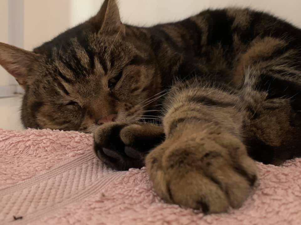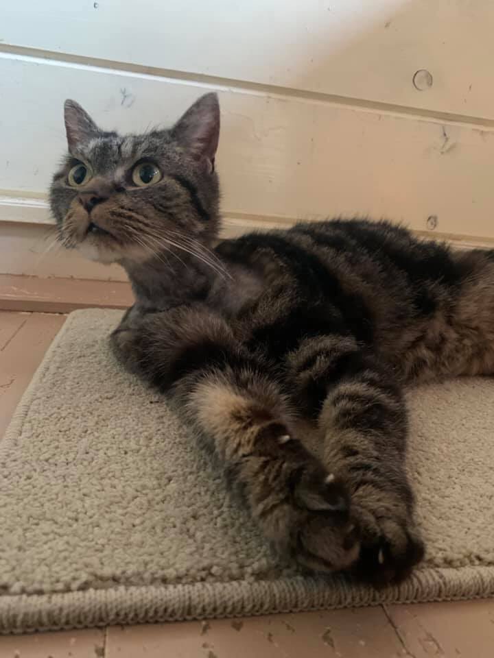 Sadly Lucky’s adoption didn’t work out, but she’s lavishing lots of love on us in the meantime. Lucky needs a home who enjoys her chatting and respects her independent nature. After all she’s been through she deserves a special home where she’ll be thoroughly spoiled