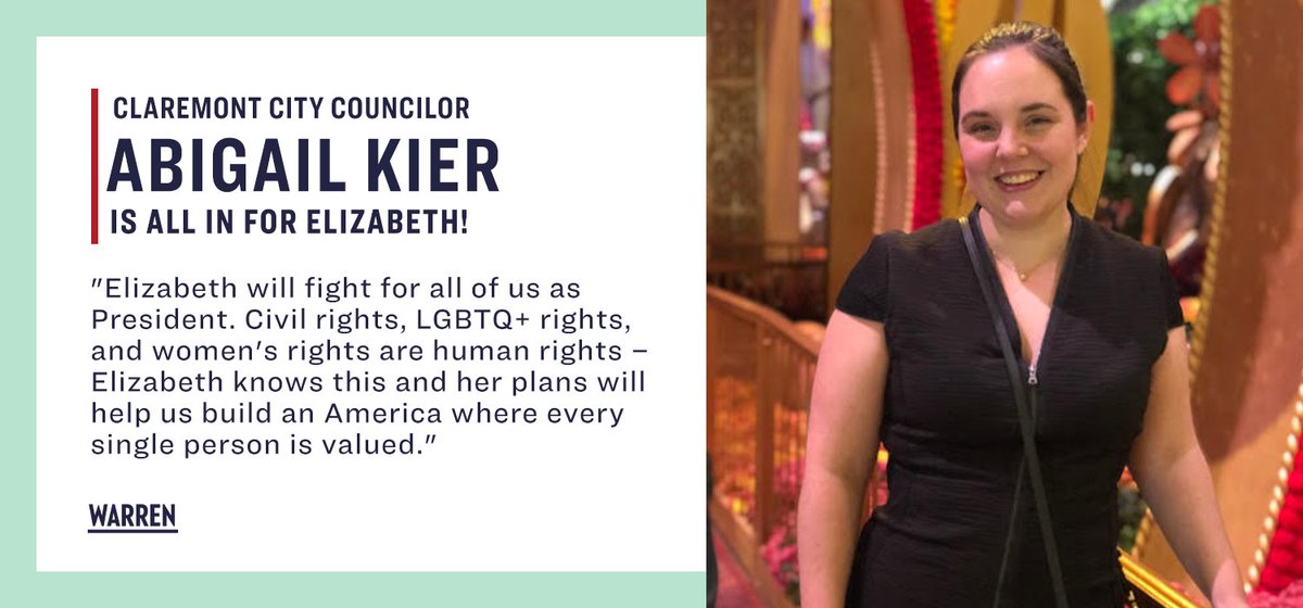"Let us be the proof that Elizabeth Warren can pull support from every corner of the party," says