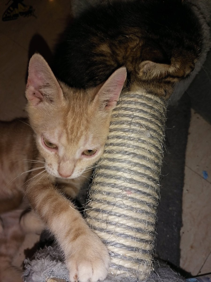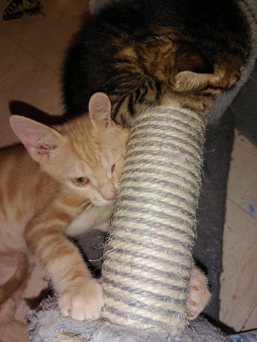 I never seen kitty's love a scratching post so much ASIAGO & DAFFY