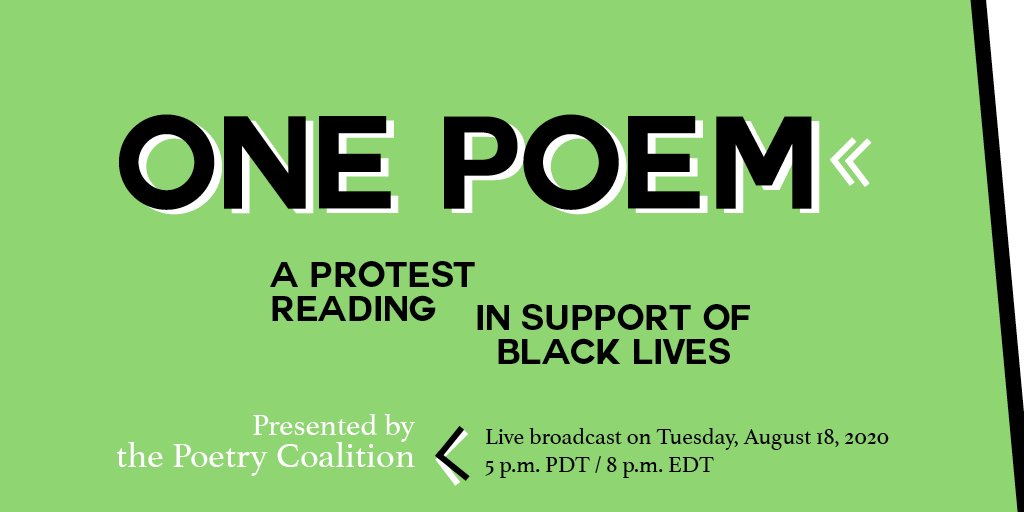 #PoetryCoalition are honored to present ONE POEM: A Protest Reading in Support of Black Lives! The free event airs Tue, 8/18, 5 pm PT / 8 pm ET via live broadcast with closed captioning. To RSVP, visit: http://linktr.ee/onepoem .pic.twitter.com/DeL4IN9j30