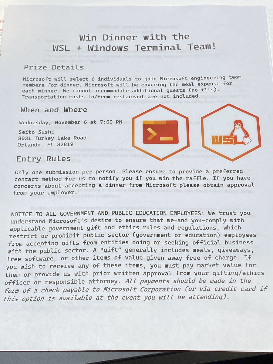 Want to grab dinner with the WSL and Windows Terminal team? Come enter our booth giveaway!