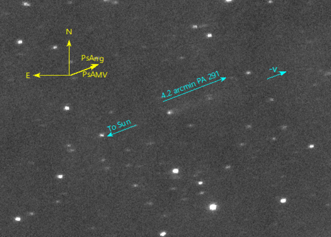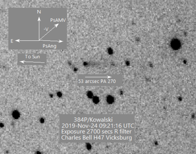 Comet 384P/Kowalski has short dust tail extending westward. Af rho is very small 2019-Nov-29 09:37:24 UTC
