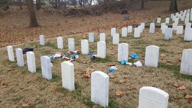 A small veterans cemetery in Alton, Illinois has been vandalized