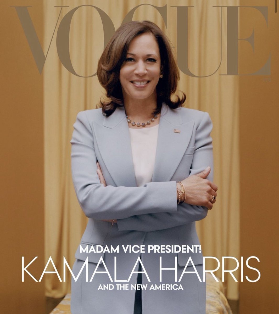 Kamala Harris posed for the photo in the powder blue suit w/ gold background for the Feb. cover of Vogue. Vogue, without her team’s knowledge, switched out the cover to the pink and green photo, per a person familiar w/ their discussions (confirming @yashar from overnight)pic.twitter.com/LvaMJcPlH0