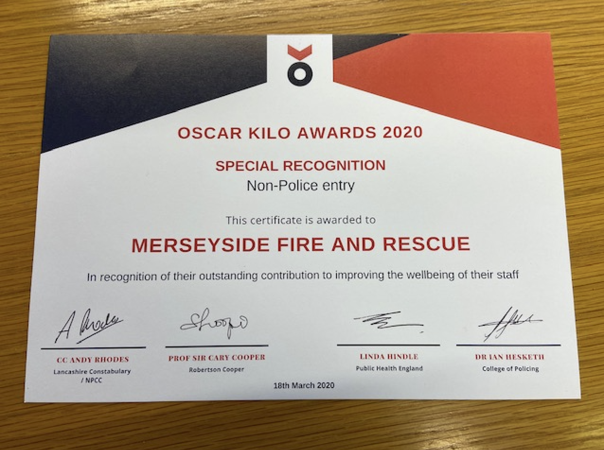 @MerseyFire who received a Special Recognition Award from@OscarKiloUK for this CISM to improve#Wellbeinghttps://twitter.com/OscarKiloUK/status/1281574197676904448 …