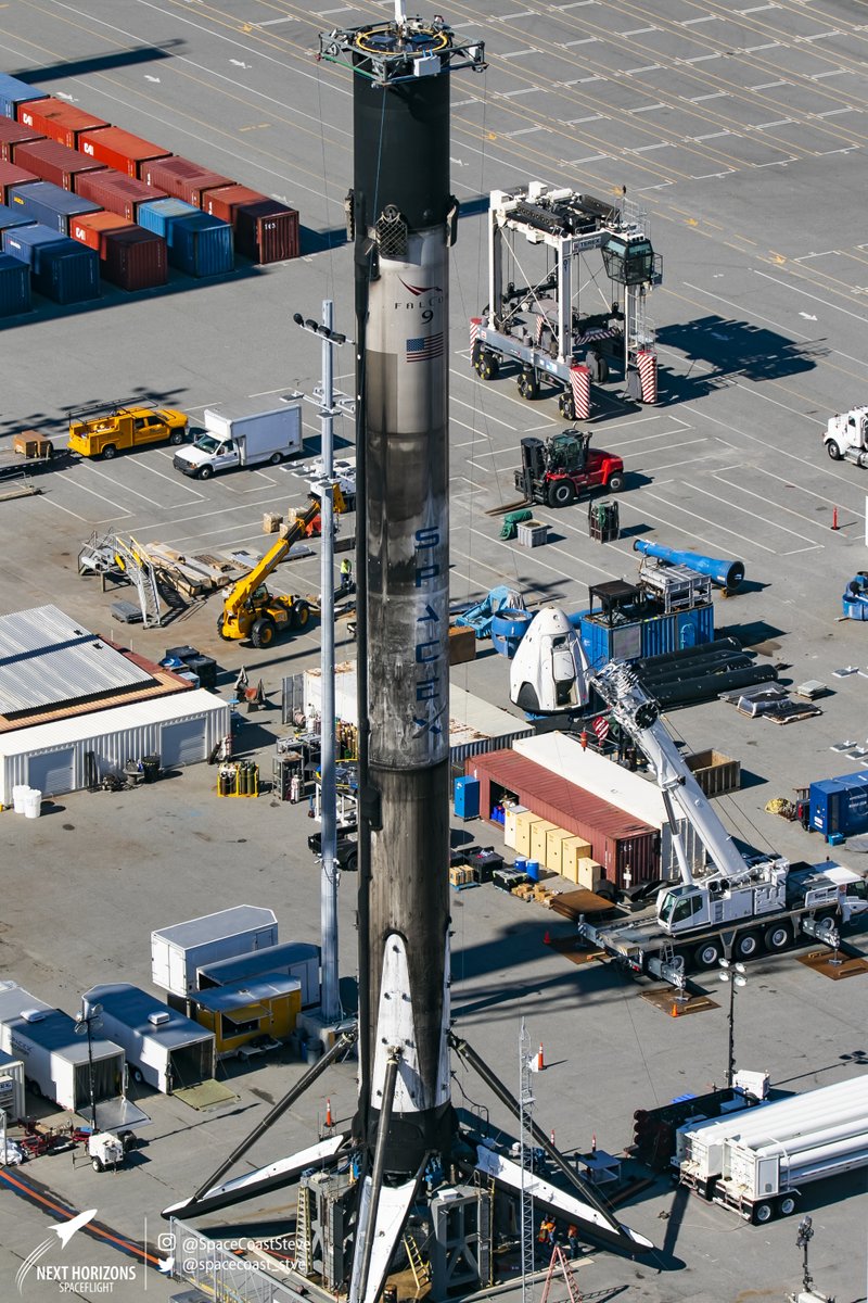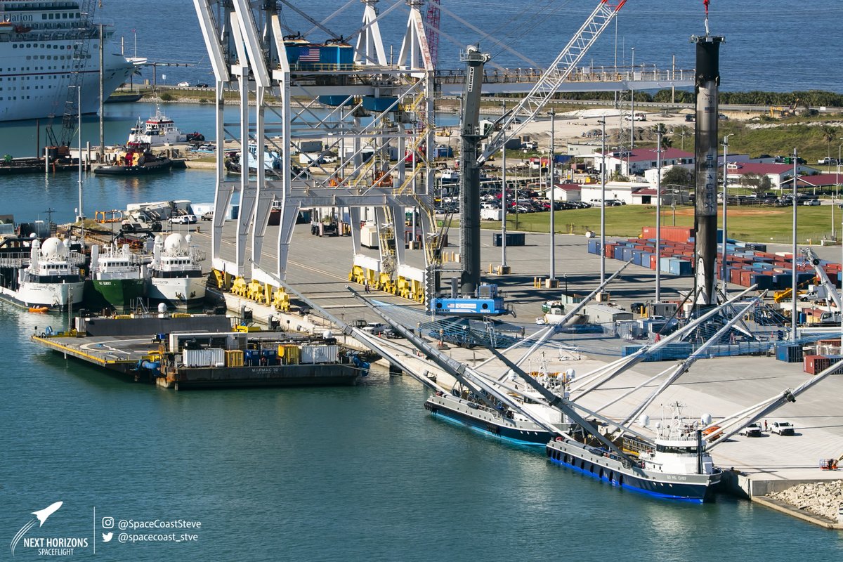 #SpaceX#Falcon9 B1051.3 and#OCISLY. Here are a few shots, including a family portrait, the booster, and work being done on the OCISLY's deck. We all saw the hard landing, but is there damage to the droneship? I can't tell for sure.