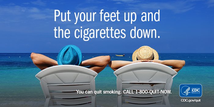 Enjoy a smokefree weekend! Visit http://CDC.gov/quit for free help.