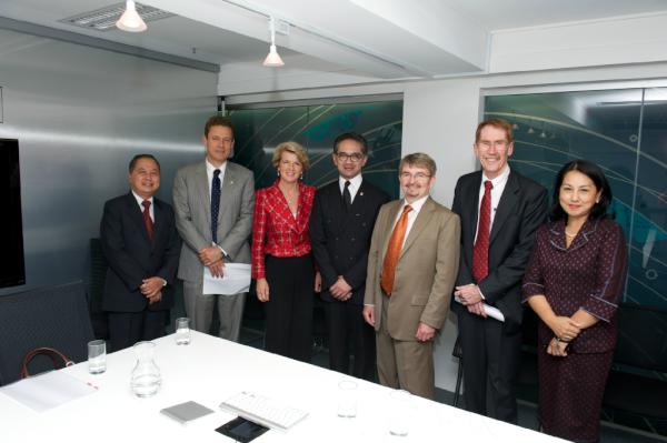 Indonesian Foreign Minister with Dr. Sherlock and the Vice Chancellor of ANU Prof. Ian Youngpic.twitter.com/qfqbtS5I