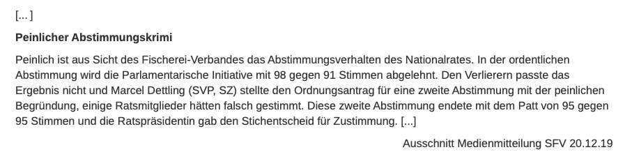 SVP-Machtpolitik dreht heute mit Ordnungsantrag schon gewonnene Abstimmung - zum dramatischen Nachteil des schweizweiten