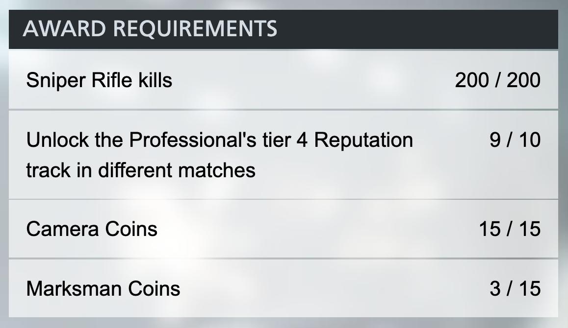 Now it's time for the remaining marksman coins. I didn't know you HAD to be the professional for it but other classes don't get marksman bonus ― even when using sniper rifles ― that's why I only had 3
