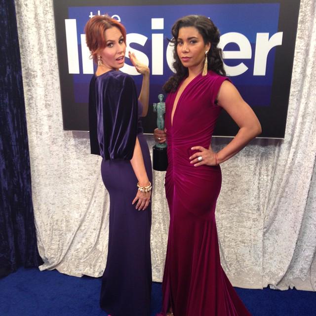 Having a #velvet moment with Jessica Pimentel @TheCrusher007 - wow what a dress!!! -@KeltieKnight #sagawardspic.twitter.com/88dRXo4Cxo