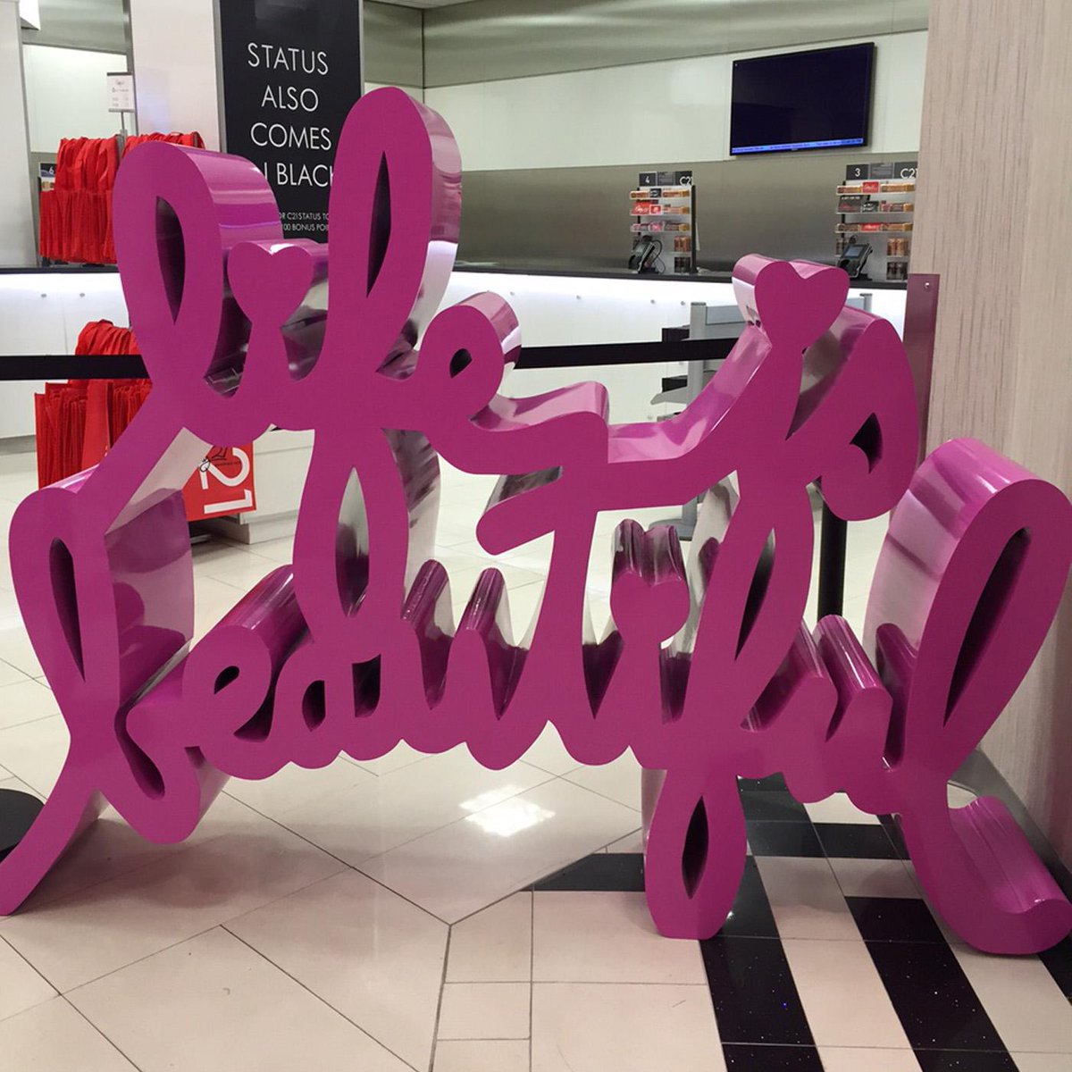 See the @MrBrainwash sculpture outside the new visitor center at C21 Downtown! Snap a photo & tag it #C21Selfie!pic.twitter.com/pQo3M9Xouz
