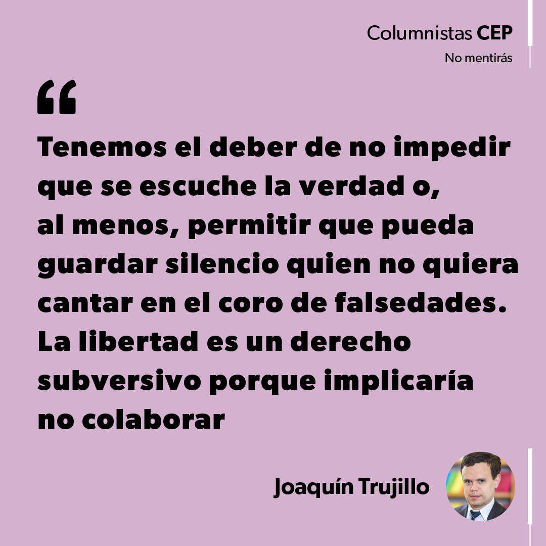 #ColumnistasCEP "Decir la verdad permanentemente requiere un esfuerzo por conseguirla y propagarla. No mentir, en cambio, significa que no podemos envenenar el mundo con imágenes distorsionadas del mundo".