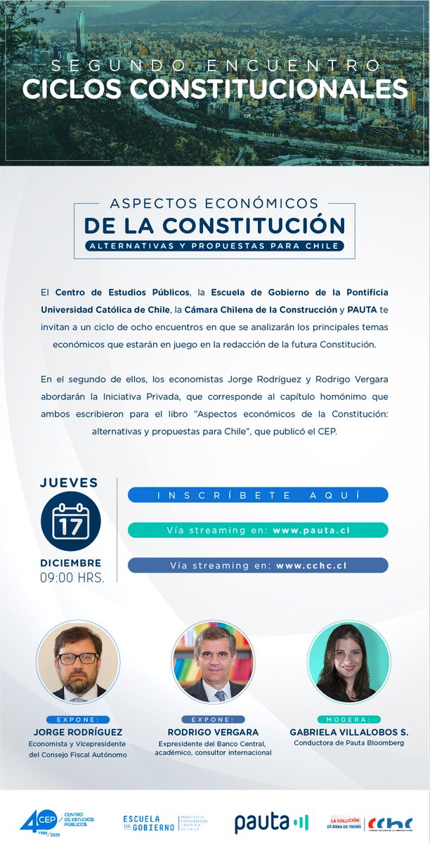 ¡Este jueves a las 09:00 hrs! Rodrigo Vergara y Jorge Rodríguez abordarán la iniciativa Privada uno de los capítulos del libro "Aspectos económicos de la Constitución: alternativas y propuestas para Chile". @Pauta_cl @GobiernoUC @CamaraCChC
