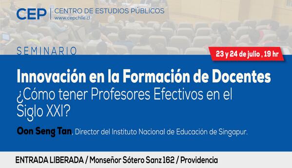 SEM Innovación en la Formación de Docentes: ¿Cómo tener Profesores Efectivos en el Siglo XXI? http://www.cepchile.cl/1_5596/doc/seminario_innovacion_en_la_formacion_de_docentes_como_tener_profesores_efecti.html …pic.twitter.com/Npcb0WOx6b