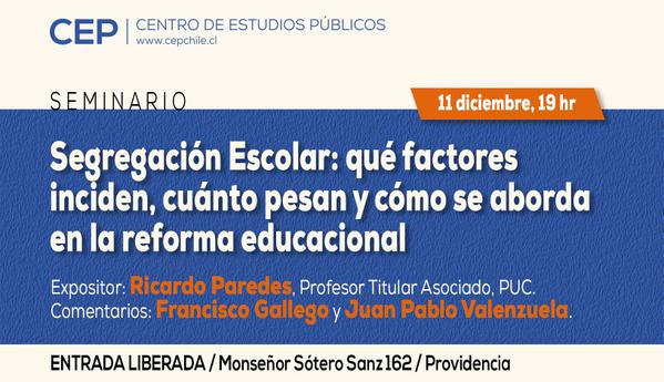 11dic SEM Segregación Escolar: qué factores inciden y cómo se aborda en la reforma educacional http://www.cepchile.cl/1_5753/doc/seminario_segregacion_escolar_que_factores_inciden_cuanto_pesan_y_como_se_abo.html …pic.twitter.com/bnI1LxZoBF