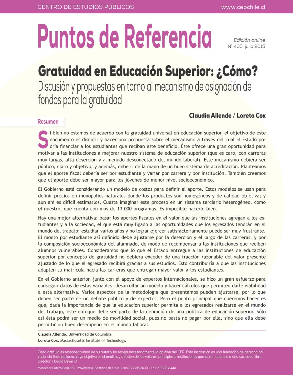 DOC #Gratuidad en Educación Superior: ¿Cómo?, Claudia Allende y Loreto Cox. http://www.cepchile.cl/1_6010/doc/gratuidad_en_educacion_superior_como_discusion_y_propuestas_en_torno_al_meca.html …pic.twitter.com/Cwt1yzSjTS