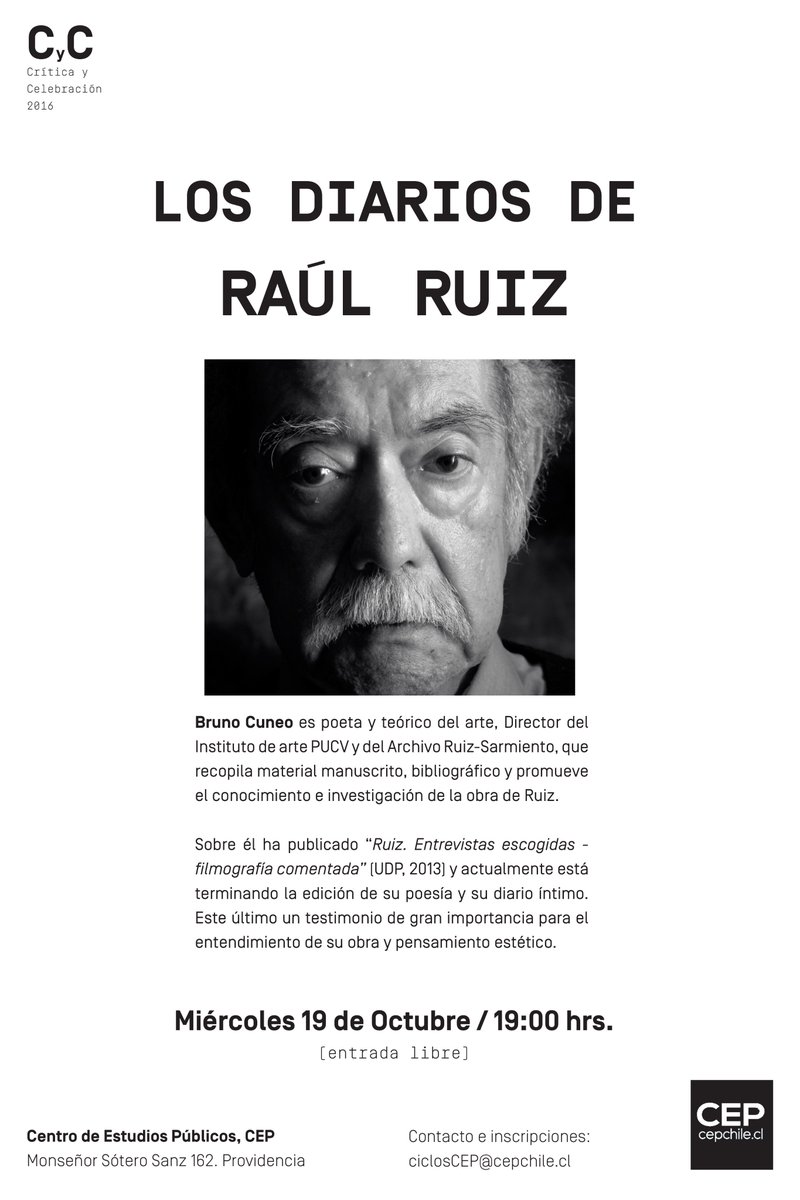 HOY 19hrs "Los diarios de #RaúlRuiz2, por Bruno Cuneo. http://www.cepchile.cl/los-diarios-de-raul-ruiz/cep/2016-10-11/132306.html …