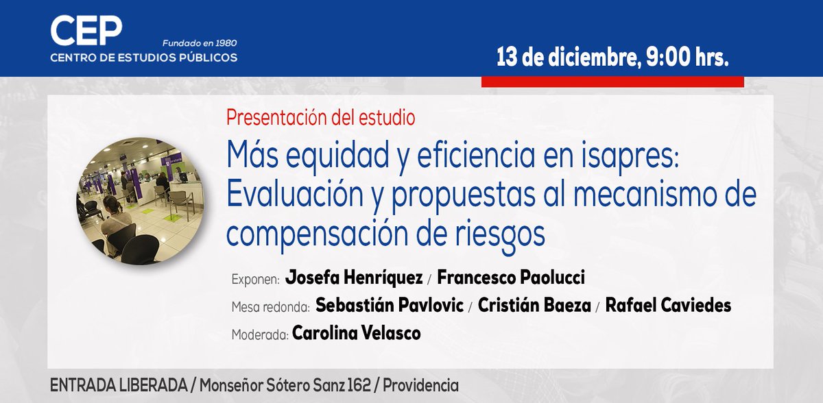 Presentación del estudio “Más equidad y eficiencia en #isapres" http://bit.ly/2gQTFV3 13 dic 9AM @dr_paolucci @josefa_henriqpic.twitter.com/E5LIhPbwnS
