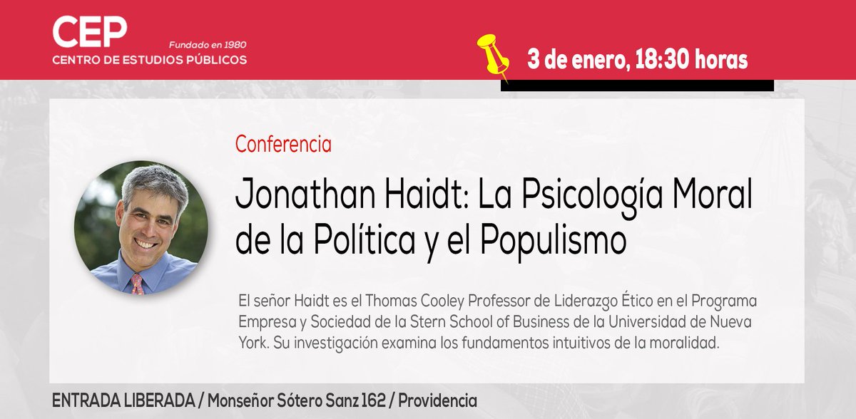 3 enero Conferencia: Jonathan Haidt: La Psicología Moral de la Política y el Populismo http://bit.ly/2hwac1u pic.twitter.com/pRqyiy2x1z