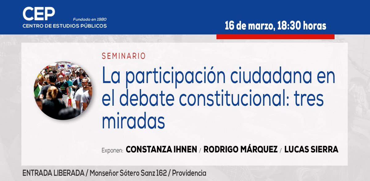 https://www.cepchile.cl/la-participacion-ciudadana-en-el-debate-constitucional-tres-miradas/cep/2017-03-03/091459.html … 16/mar/2017pic.twitter.com/9suLUeUKWK