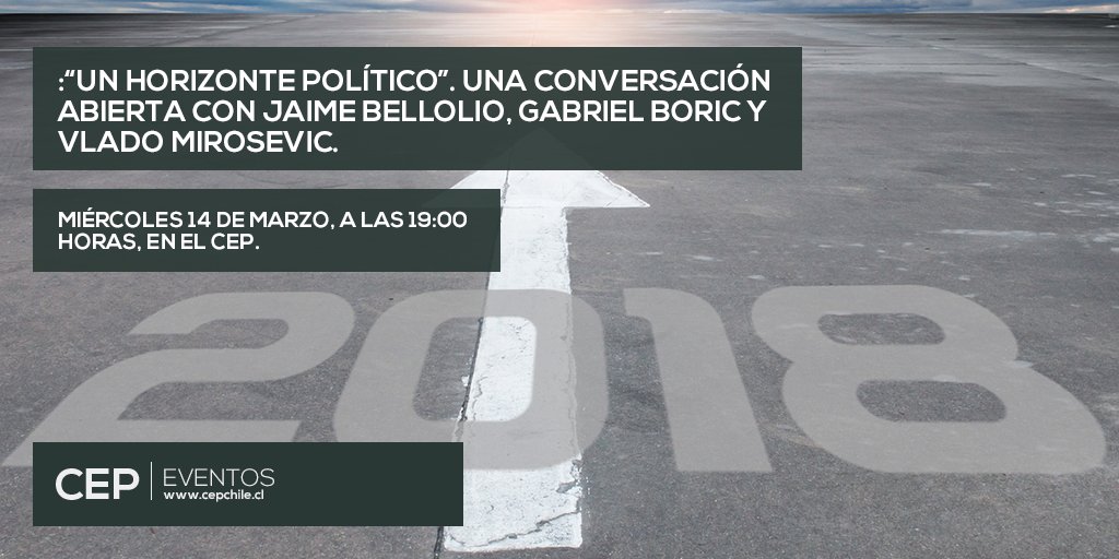 Te invitamos al Ciclo "Un Horizonte Político". Conversación abierta con los diputados Jaime Bellolio, Gabriel Boric y Vlado Mirosevic. Miércoles 14 de marzo, a las 19:00 horas, en el CEP. Inscríbete aquí: http://bit.ly/2Hf2p44 pic.twitter.com/qzGEMSJUVN