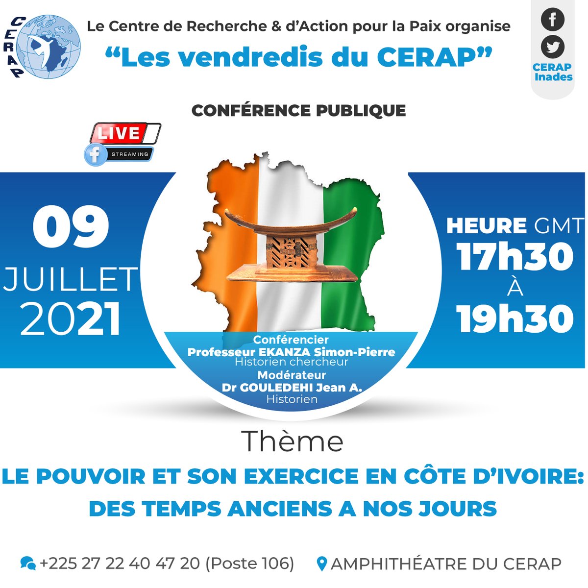 [CONFERENCE] Les Vendredis du CERAP Venez décrypter avec les conférenciers, la question du djihadisme en Afrique de l'ouest. Ce panel se voulant un lieu d'échanges et de réflexion, nous comptons sur votre présence ! NB : entrée gratuite !pic.twitter.com/TC4d4tytK5
