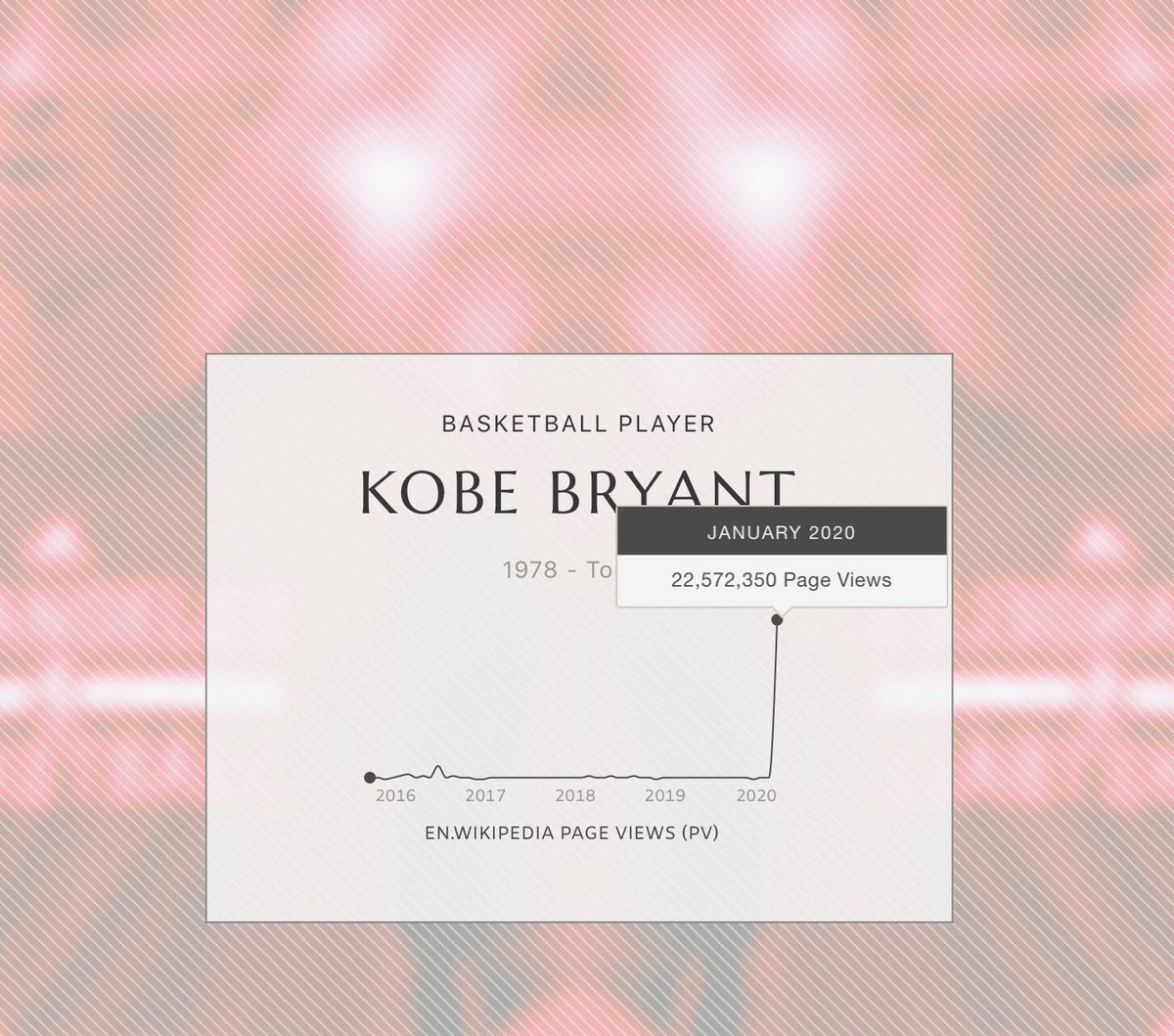 But the most popular biography in Wikipedia today is that of the late Kobe Bryant, with over 22.5 million pageviews. In fact, Bryant has been trending in all language editions, showing the global reach of his fame.pic.twitter.com/mzSDNZMpoi