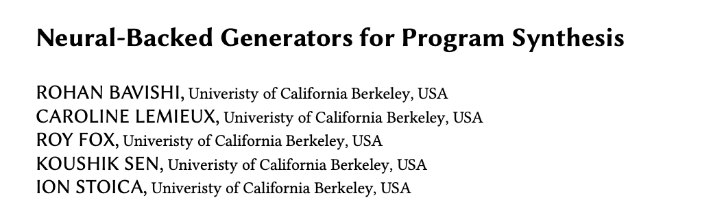 @code_monet just finished presenting our paper on Neural-Backed Generators for Program Synthesis, i.e. autopandas, at@splashcon . Really neat idea on smartly controlling the nondeterminism in generators to do synthesis, if I do say so myself ;)pic.twitter.com/kHzR2yWhyX