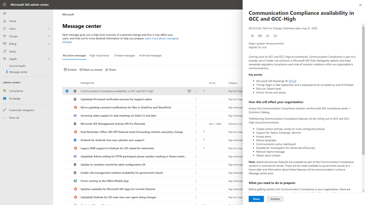 Microsoft 365 Communication Compliance is coming to Government Cloud Customers (GCC & GCC-High) https://aka.ms/communicationcompliance …