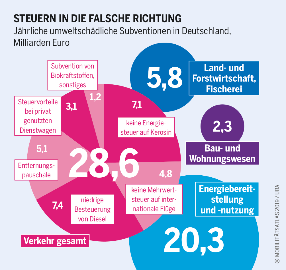 1/2: Jährliche, klimaschädliche Subventionen im Bereich Verkehr: 28,6 Milliarden [sic!] Euro. Oder umgerechnet etwa 2,5 Millionen notstromfähige, dezentral fertig installierte