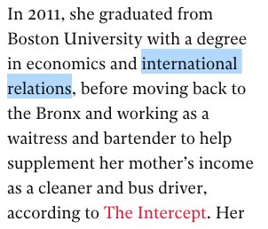 Lol Ocasio-Cortez has a degree in international relations. https://twitter.com/RealSaavedra/status/1018707668993626112 …pic.twitter.com/xvjK4ye8Lu